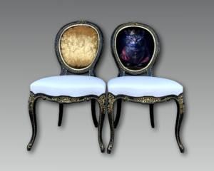 Eleganckie pozłacane krzesła gotowe do nałożenia tapicerki. Obicie do wyboru skóra lub materiał.